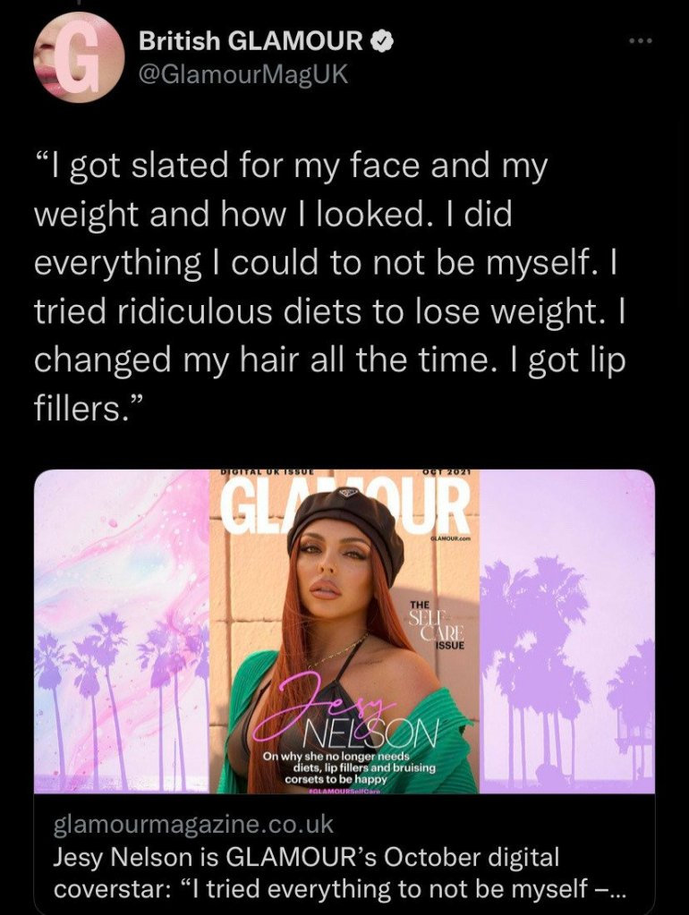 And she also continues to play victim instead of trying to understand and see the bigger picture. Jesy I am truly so sorry you were bullied and you had a hard time in little mix. But so did the other girls and you keep downplaying their struggles to yours. I don’t feel bad for jesy anymore, she doesn’t take accountability for anything she does. And will ride this victim train until it runs dry. The sad part being she is super talented and can actually sing. But this single is not it and this marketing plan her team has her on, is also not it.